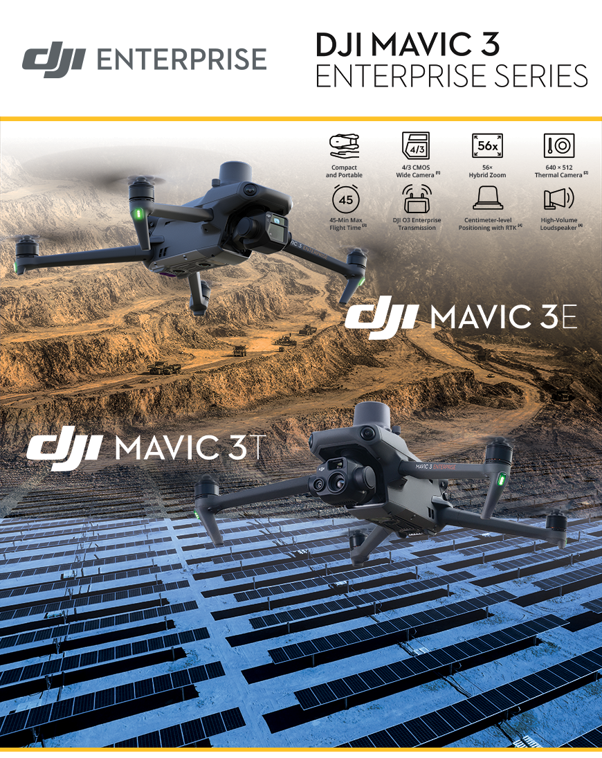 Mavic 3 Enterprise Serisi, küçük ticari dronlar için sektör standartlarını yeniden tanımlar. Mekanik deklanşör, 56× zoom kamerası ve santimetre düzeyinde hassasiyet için RTK modülü ile Mavic 3E, haritalama ve görev verimliliğini yeni bir seviyeye taşır. Yangınla mücadele, arama kurtarma, denetim ve gece operasyonları için termal versiyonu da mevcuttur.